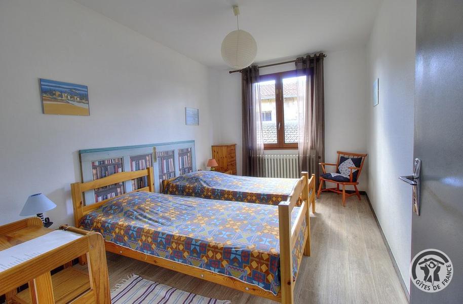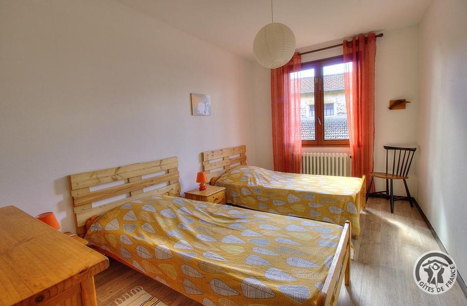 Gîte de Haute-Combe à Juliénas dans le Beaujolais (vignobles) - Rhône : chambre (2) avec 2 lits simples (étage).