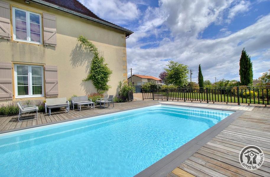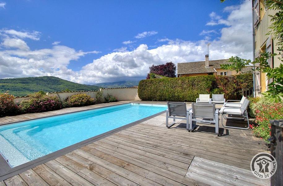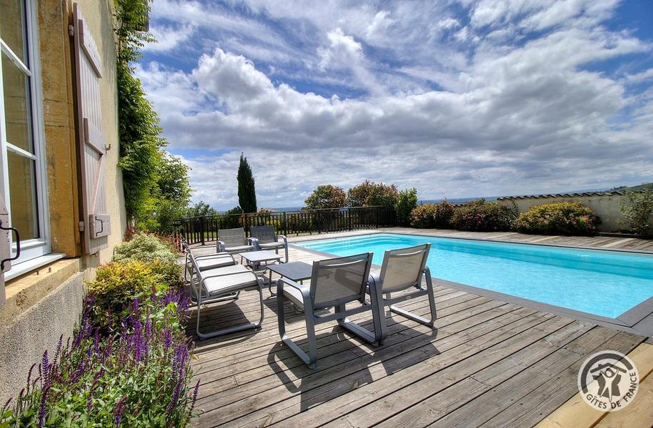 Grand Gîte "Le Prieuré des Mouilles" avec piscine privée à Juliénas, dans le Beaujolais des crus - proximité Bourgogne et Mâcon, dans le Rhône : la piscine privée.