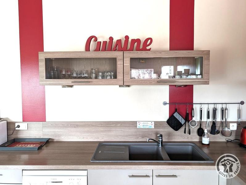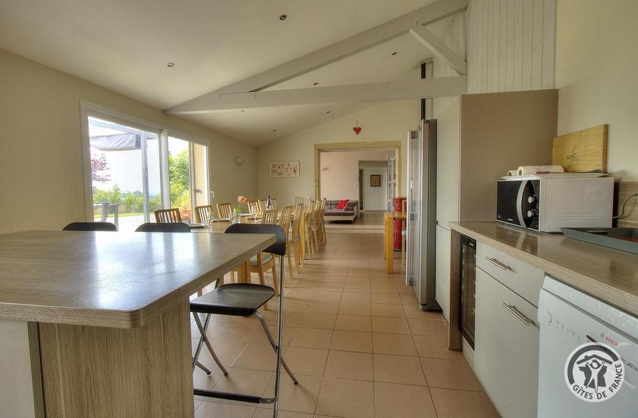 Grand Gîte "Le Prieuré des Mouilles" avec piscine privée à Juliénas, dans le Beaujolais des crus - proximité Bourgogne et Mâcon, dans le Rhône : le coin-cuisine tout équipé - rez-de-chaussée.