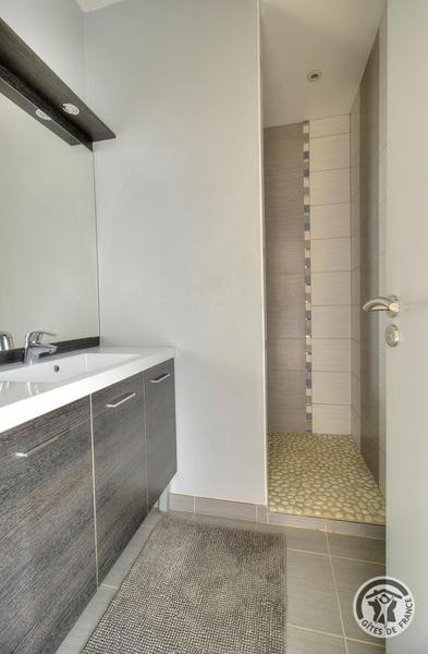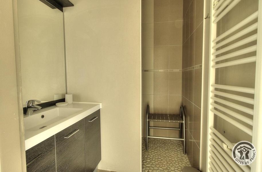 Grand Gîte "Le Prieuré des Mouilles" avec piscine privée à Juliénas, dans le Beaujolais des crus - proximité Bourgogne et Mâcon, dans le Rhône : la salle d'eau au rez-de-chaussée.