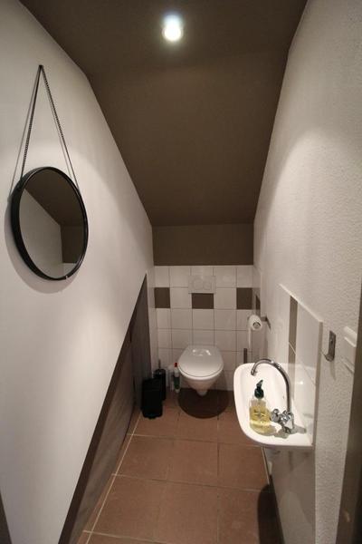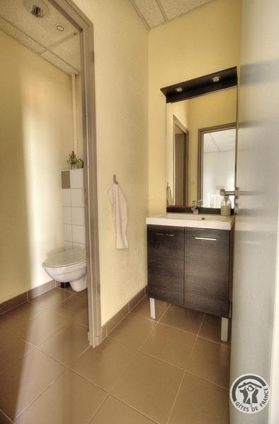 Grand Gîte "Le Prieuré des Mouilles" avec piscine privée à Juliénas, dans le Beaujolais des crus - proximité Bourgogne et Mâcon, dans le Rhône : toilettes au rez-de-chaussée.