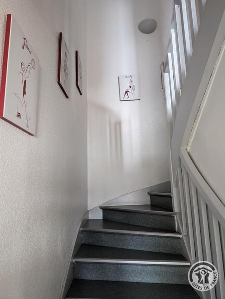 Grand Gîte "Le Prieuré des Mouilles" avec piscine privée à Juliénas, dans le Beaujolais des crus - proximité Bourgogne et Mâcon, dans le Rhône : la montée d'escaliers.