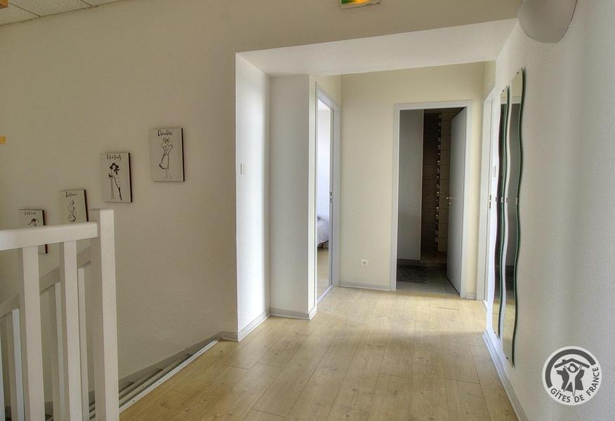 Grand Gîte "Le Prieuré des Mouilles" avec piscine privée à Juliénas, dans le Beaujolais des crus - proximité Bourgogne et Mâcon, dans le Rhône : dégagement en haut de l'escalier à l'étage.