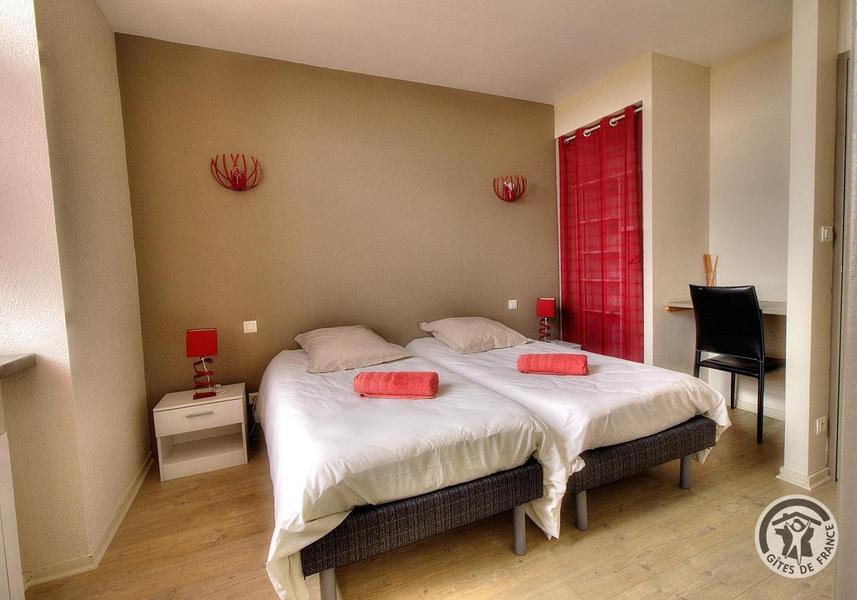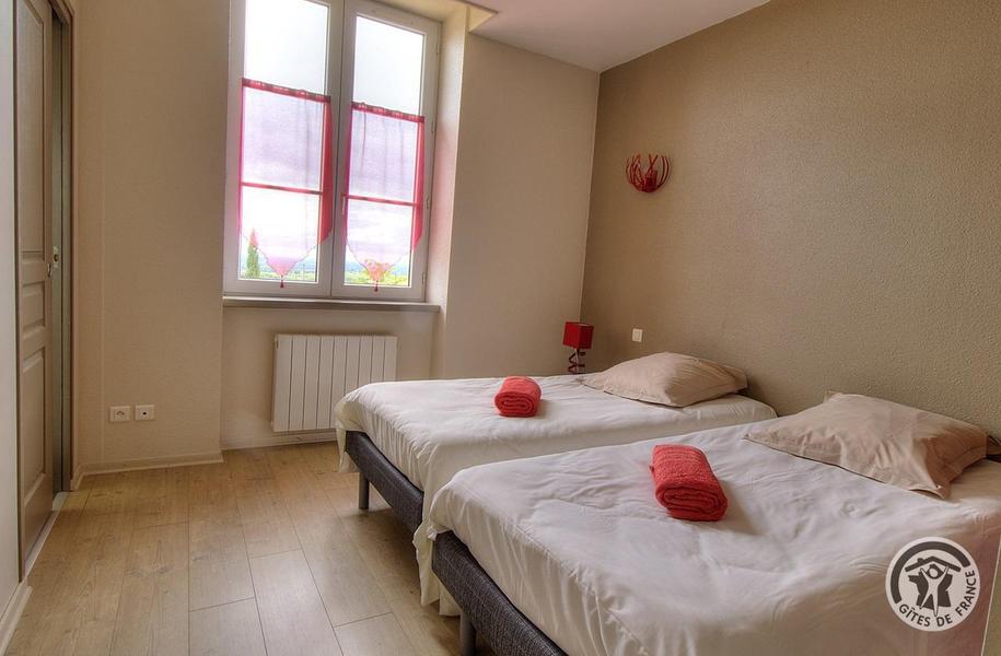 Grand Gîte "Le Prieuré des Mouilles" avec piscine privée à Juliénas, dans le Beaujolais des crus - proximité Bourgogne et Mâcon, dans le Rhône : la chambre "Saint Amour" à l'étage - 3 personnes.