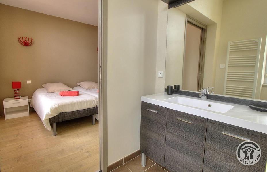 Grand Gîte "Le Prieuré des Mouilles" avec piscine privée à Juliénas, dans le Beaujolais des crus - proximité Bourgogne et Mâcon, dans le Rhône : salle d'eau privée dans la chambre "Juliénas".