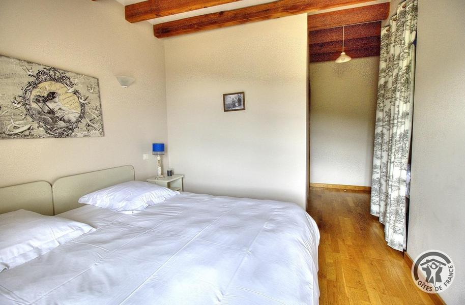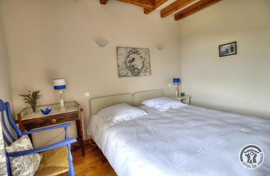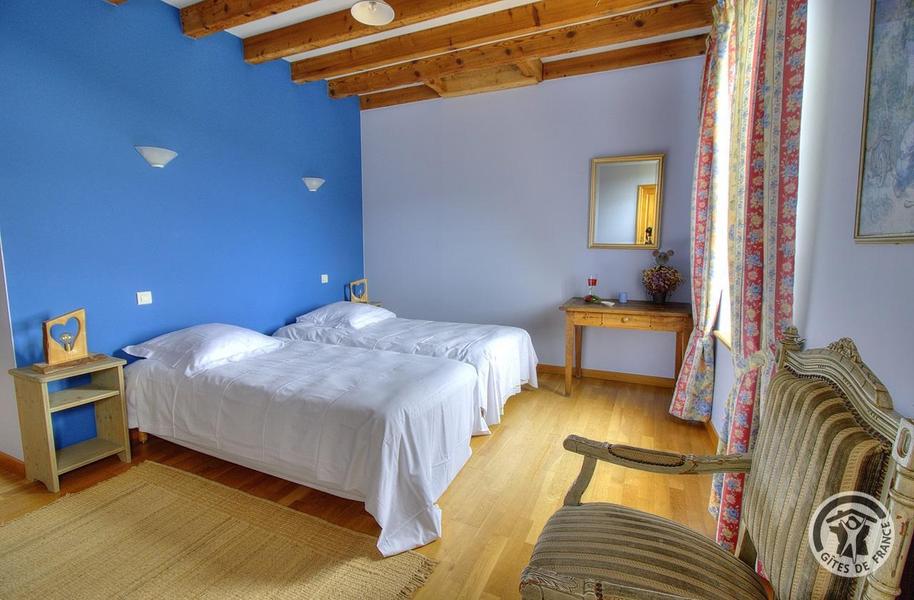 Chambres d'Hôtes "Domaine Lagneau" à Quincié en Beaujolais, proximité Beaujeu, vignobles dans le Rhône : la Chambre "Jasmin" à l'étage : 2 lits simples ou 1 lit double.