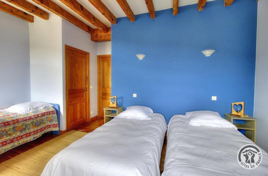 Chambres d'Hôtes "Domaine Lagneau" à Quincié en Beaujolais, proximité Beaujeu, vignobles dans le Rhône : Ensemble familial "Chèvrefeuille" composé de 2 chambres à l'étage - 1ère chambre 3 lits simples.