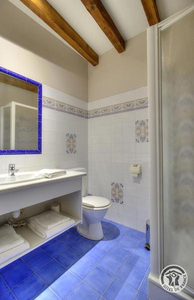 Chambres d'Hôtes "Domaine Lagneau" à Quincié en Beaujolais, proximité Beaujeu, vignobles dans le Rhône : Salle d'eau avec wc de la Chambre "Ancolie" à l'étage.