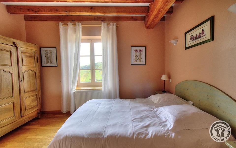 Dans une combe paisible, entre vignes et forêts, à quelques kilomètres de Beaujeu, capitale historique du Beaujolais, la famille Lagneau vous ouvre les portes de son domaine viticole, transmis de père en fils et aujourd'hui dirigé par leur fils Didier. Gérard et Jeannine, viticulteurs passionnés, pour qui la transmission et le partage sont des valeurs essentielles, vous y accueillent chaleureusement. Les quatre chambres d'hôtes, aménagées avec soin, reflètent le caractère authentique du lieu. Dans cette grande maison en pierres, vous découvrirez une ambiance chaleureuse où le charme de la campagne se mêle à des matériaux nobles comme les poutres apparentes, les meubles anciens en bois, et les murs en pierres. Au rez-de-chaussée, une vaste pièce de vie (coin repas, coin cuisine et coin salon) réservée aux hôtes, vous invite à la détente, avec le poêle à bois pour des moments conviviaux, et un accès direct à l'extérieur. Dans la cour, la tonnelle (salon de jardin) offre une vue imprenable, allant parfois jusqu'à la chaîne des Alpes. A l'étage, les 4 chambres disposent chacune de sanitaires privatifs (douche, lavabo et wc) et de couchages spacieux pour un confort optimal. L'Ensemble familial "Chèvrefeuille" comprend deux chambres communicantes pouvant accueillir jusqu'à 5 personnes, dans 5 lits simples : 3 dans une chambre et 2 dans l'autre. La Chambre "Genêt" dispose de 2 lits simples et 1 lit d'appoint, la Chambre "Jasmin" de 2 lits simples qui peuvent se regrouper en 1 lit double (180 x 200 cm). Et enfin la Chambre "Ancolie" peut recevoir 2 personnes dans 1 lit double (160 x 200 cm). Les propriétaires, producteurs de Régnié et Beaujolais Villages, se feront un plaisir de vous faire découvrir leur passion pour le terroir et leurs vins. Vous pourrez également visiter la cave voûtée datant du 16ème siècle. Pour une arrivée anticipée entre 14h et 17h, supplément 5€/ personne.