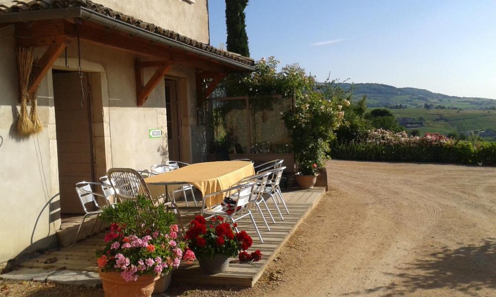 Chambres d'Hôtes "Domaine Lagneau" à Quincié en Beaujolais, proximité Beaujeu, vignobles dans le Rhône : la terrasse.