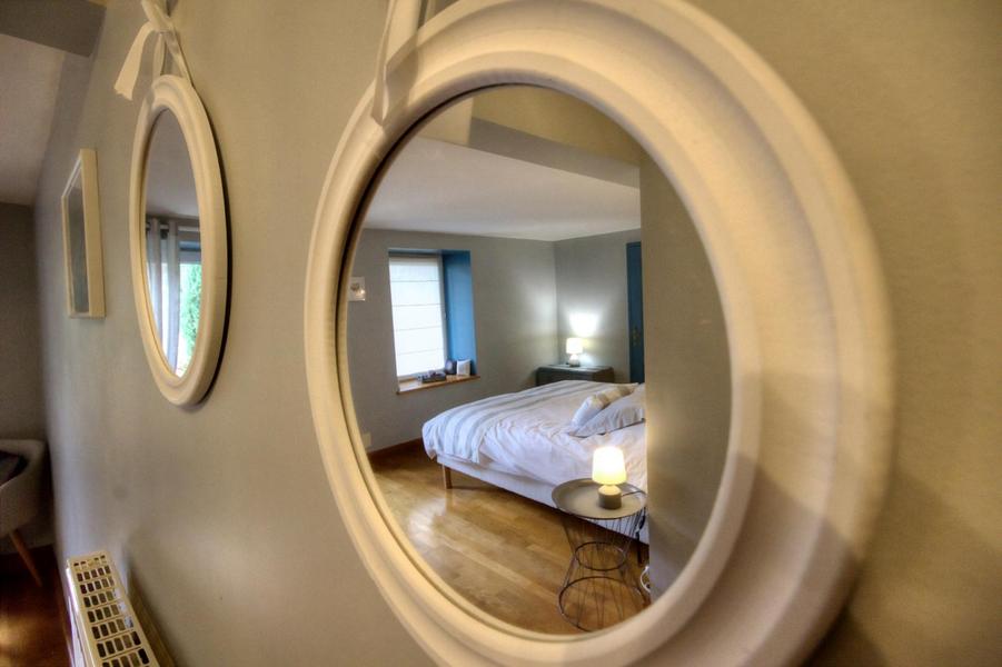 Attachés à la qualité de vie et aux valeurs d'échange, vous serez accueillis en toute convivialité par Hélène et Alain dans leurs 2 chambres d'hôtes. Chaque chambre décorée avec soin dispose de sanitaires privatifs et d'une entrée indépendante sur un balcon en pierres. Elles sont spacieuses et confortables. Environnement calme, idéal pour une halte ou un séjour ressourçant. Tombés sous le charme de cette région, vos hôtes auront à coeur de vous faire découvrir ce lieu idéal pour les amoureux de la nature et des loisirs de plein air mais également riche en patrimoine, visites culturelles ou gastronomiques... Les petits déjeuners gourmands élaborés à base de produits maison ou locaux sont servis dans la salle à manger familiale ou sous l'abri extérieur aux beaux jours (sur demande possibilité de petit déjeuner salé-sucré). A la table d'hôtes (sur réservation uniquement), vous pourrez savourer une cuisine simple et goûteuse élaborée à partir de produits locaux, provenant des différentes fermes locales. Tarif dégressif au delà de 2 nuits.