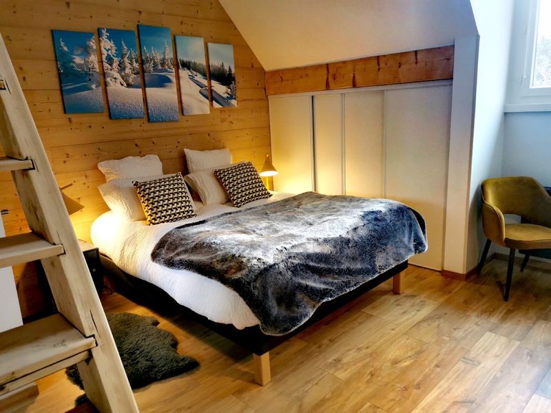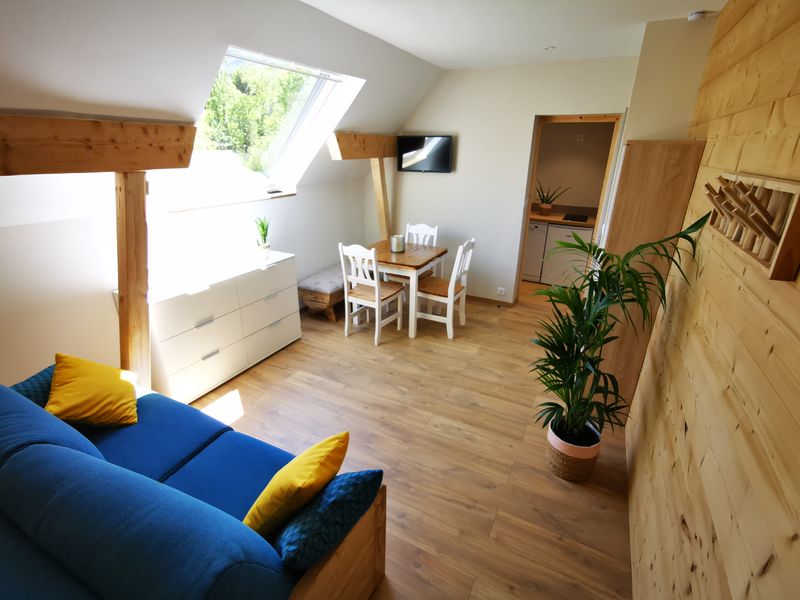 Au carrefour des vallées alpines savoyardes et iséroises, Flory vous accueille sur sa propriété. Véritable projet de famille, leur rêve est devenu réalité quand ils ont fait l'acquisition de ce charmant domaine au cœur des vignes, avec piscine (de mai à septembre), le bain norvégien (d'octobre à avril), un petit étang, rivière et grands espaces. Remis à leur goût au terme de quelques mois de travaux, l'aventure peut enfin commencer ! Vous n'aurez plus qu'à venir y poser vos valises, pour découvrir à vélo ou en rando les alentours ou monter skier dans les stations de Chartreuse, des Bauges ou de Belledonne. L'appartement, dont l'entrée est commune avec une chambre d'hôtes, est situé au 1er étage et est composé d'une pièce de vie (1 canapé rapido en 140x190 cm), une petite cuisine toute équipée, une chambre double avec mezzanine et 1 lit 1 personne, dont l'accès se fait par un escalier assez raide, salle de bains avec baignoire et wc. Piscine extérieure chauffée, bain norvégien, étang et rivière, jeux d'enfants extérieurs. L'accès aux chambres se fait par un escalier extérieur abrité. Parking privé non surveillé à 200 mètres de la propriété. Vaste jardin partagé. Les draps, linges et ménage sont compris. Vous disposez d'un matelas supplémentaire dans le lit parapluie. Un seul animal est accepté par appartement.