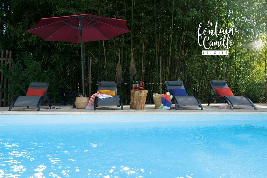 Grand Gîte 'La Fontaine Camille' à Neuville-sur-Saône (Rhône, Métropole de Lyon, Nord de Lyon) : détente au bord de la piscine.