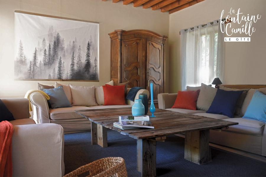 Grand Gîte 'La Fontaine Camille' à Neuville-sur-Saône (Rhône, Métropole de Lyon, Nord de Lyon) : le salon au rez-de-chaussée.
