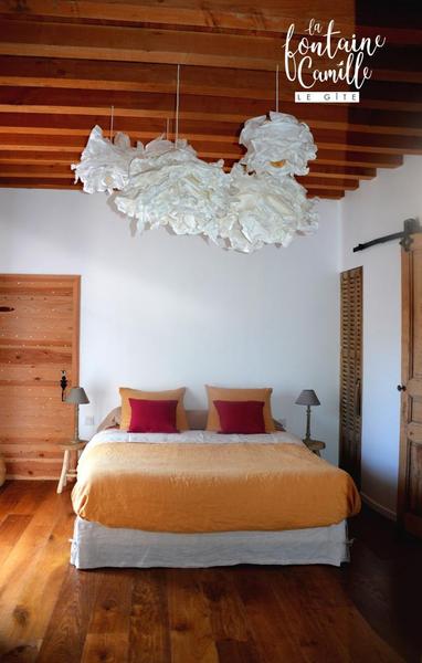 Grand Gîte 'La Fontaine Camille' à Neuville-sur-Saône (Rhône, Métropole de Lyon, Nord de Lyon) : le lit 2 personnes dans la Chambre familiale.