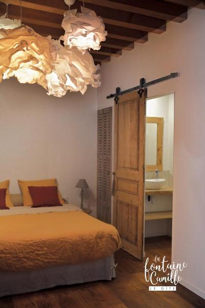 Grand Gîte 'La Fontaine Camille' à Neuville-sur-Saône (Rhône, Métropole de Lyon, Nord de Lyon) : au 1er étage, chambre avec lit de 160 cm, accès salle d'eau privée.