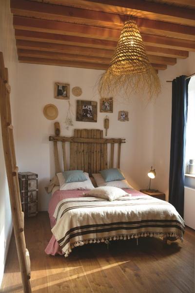 Grand Gîte 'La Fontaine Camille' à Neuville-sur-Saône (Rhône, Métropole de Lyon, Nord de Lyon) : décoration dans l'espace nuit 'Cabane' au 2ème étage.