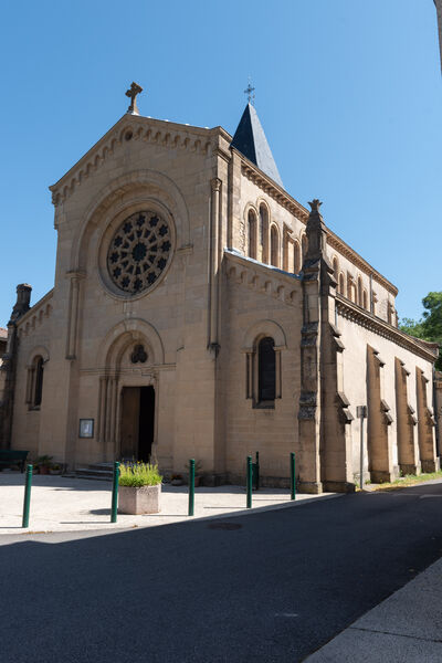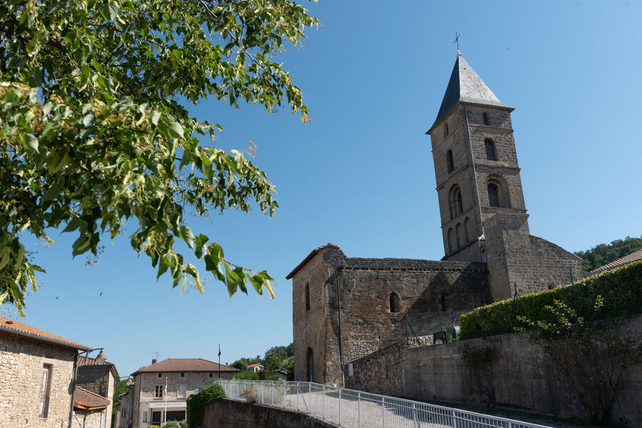 Elle est composée d'une nef unique débouchant sur un transept et d'une abside flanquée de deux absidioles. Le clocher, dont les deux premiers étages sont romans, le chevet et les absides, soigneusement parementés en tuf, donnent à l'église son caractère homogène et exceptionnel. Placée à l'origine sous le vocable de Sainte-Marie, cette église romane du XIIIème siècle, située à Meymans, dépendait au Moyen Age du prieuré voisin de Jaillans. Le portail, moderne, conduit à une nef fortement remaniée. Au delà, l'église a conservé en revanche ses parties romanes. La croisée du transept, délimitée par des arcs à double rouleau retombant sur des piliers massifs, est voûtée en berceau. Les croisillons du transept présentent également des voûtes en berceau, mais placées perpendiculairement à l'axe de la nef. Ils ouvrent sur deux chapelles orientées flanquant la nef. Les murs intérieurs sont revêtus de badigeons modernes. A l'extérieur, le chevet appareillé de moellons de tuf est remarquablement conservé. Le clocher, établi sur la croisée, surprend par sa hauteur. Il s'ordonne en cinq niveaux nettements séparés par d'épaisse moulures. Au soubassement massif succèdent quatre niveaux de baies. Les arcatures aveugles du niveau inférieur et les larges ouvertures de trois rouleaux en plein cintre du second niveau appartiennent à la période romane. Les deux derniers étages sont probablement des ajouts du XVIIème siècle. Sur la terrasse qui porte l'édifice, l'ancien cimetière a conservé quelques tombes anciennes.