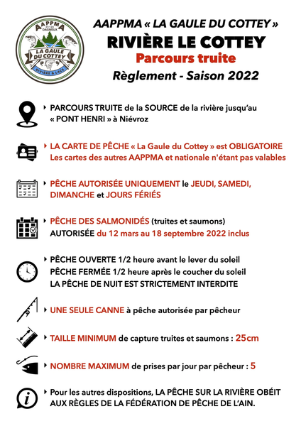 Pêcher sur tous les parcours : Lac Neyton + Rivière du Cottey + Lac des Brotteaux Renseignements auprès de la Gaule du Cottey ou sur le site internet pour les tarifs.