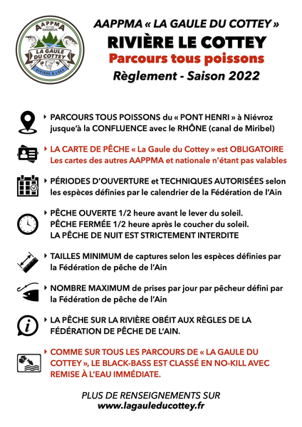 Pêcher sur la Lône du Cottey : Cette carte inclus : Lac Neyton + Rivière du Cottey + Lac des Brotteaux Les cartes « Tous parcours » incluant la rivière et le lac des Brotteaux s’achètent en ligne sur le site de la fédération : www.cartedepeche.fr