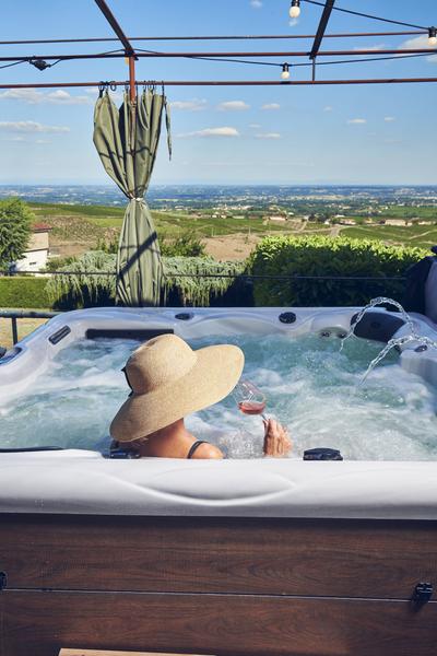 Chambre d'exception à Chiroubles, avec Spa privatif et vue panoramique sur les Crus du Beaujolais.