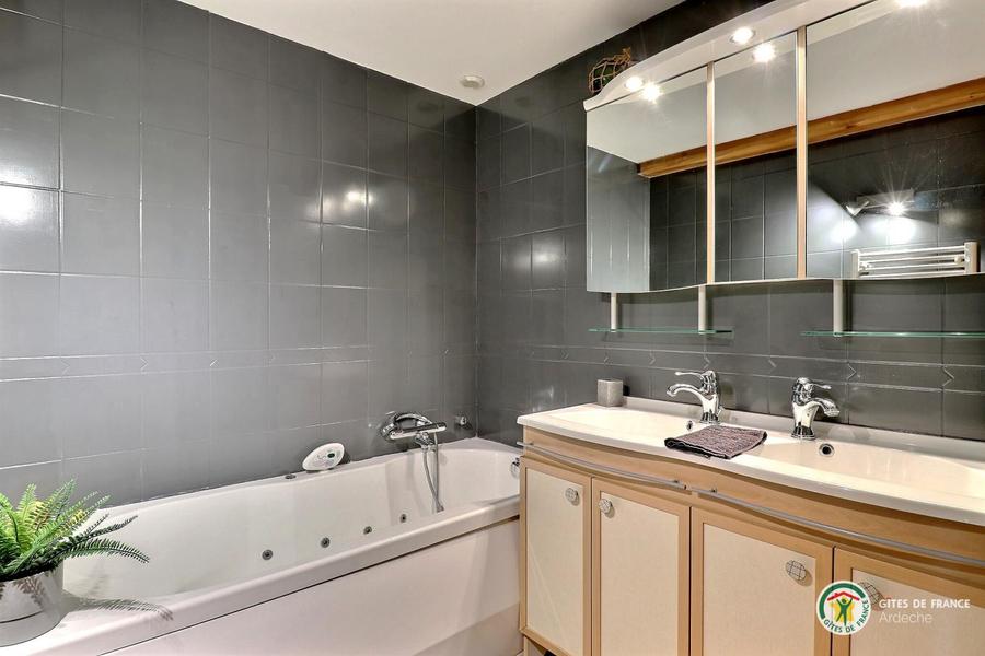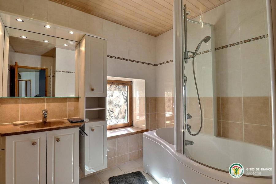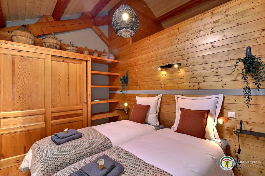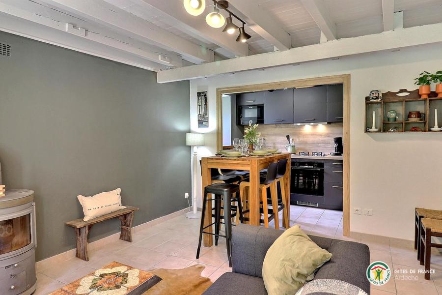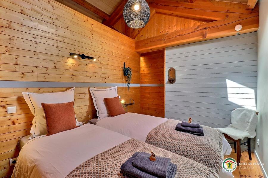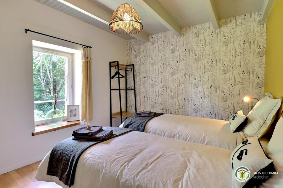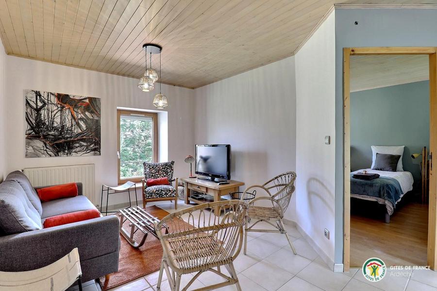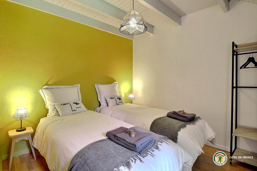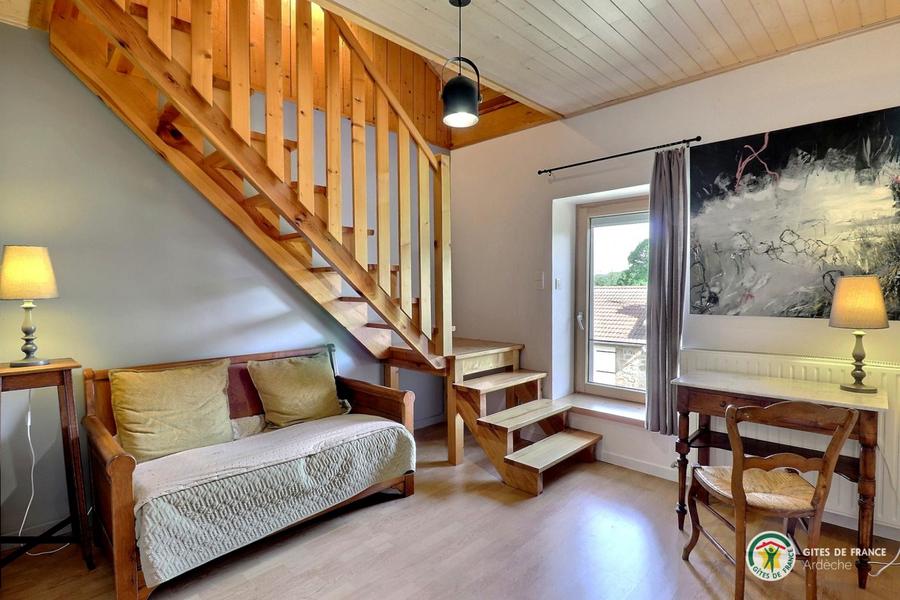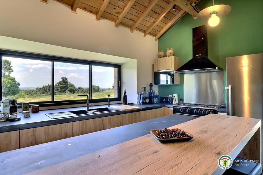 Cet ancien corps de ferme en pierre a été entièrement rénové avec goût et avec des matériaux de qualité. Vous allez être conquis par la décoration intérieure associant modernité et tradition. Situé dans un environnement naturel remarquable, le gîte vous offre un magnifique panorama sur les reliefs volcaniques du Parc Naturel Régional des Monts d’Ardèche. Le gîte est doté d’une piscine privée et chauffée de 5X12m accessible de mi-mai à fin septembre. Vous profitez également d’un grand parc et d’une terrasse où vous partagez vos repas en extérieur autour d’un brasero. Pour vos loisirs, un baby-foot, une table de ping-pong et un terrain de pétanque sont à votre disposition. L’ensemble des 3 gîtes dispose d’une entrée indépendante, il s’organise autour de la grange, une très belle pièce de plus de 150m2 où vous trouvez une grande cuisine ouverte et entièrement équipée avec un accès direct sur la terrasse et un séjour avec 2 grandes tables en bois massif. Vous pouvez également vous détendre sur l'un des canapés du grand salon et profiter de son poêle lors des soirées d'hiver. Au rez-de-chaussée de la grange, profitez d’un espace fitness/bien-être avec sauna et équipements de sport. L’ensemble des gîtes comprend 9 chambres. Chaque gîte comprend une cuisine équipée et des espaces salon/séjour avec télévision à écran plat. Pour votre confort, le linge de lit, le linge de toilette et de bain sont fournis. Vous profitez de nombreuses activités et site à découvrir à proximité : randonnée au départ du gîte, Mont Gerbier, baignade et voile au lac de Devesser, VTT et VTC sur la 'Dolce Via'. Le gîte se trouve à 50 km de Valence, 60 km de Saint-Étienne et 84 km de l’aéroport de Saint-Étienne-Loire. Un gîte idéal pour vivre de bons moments en famille ou entre amis.