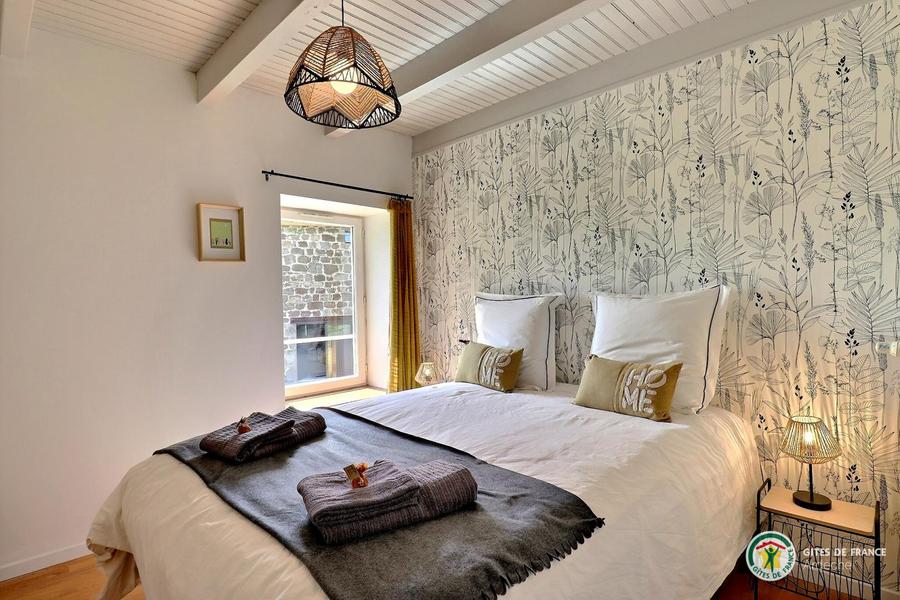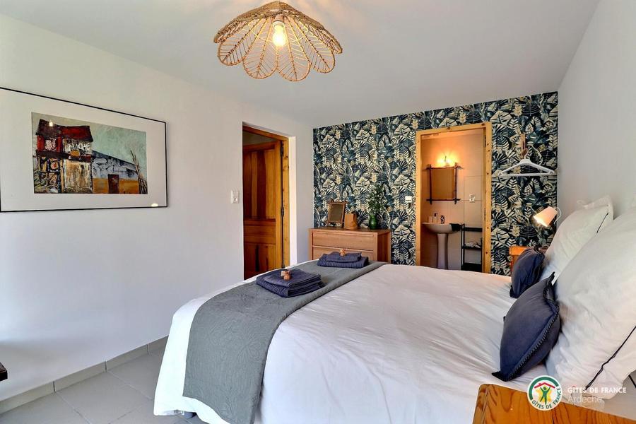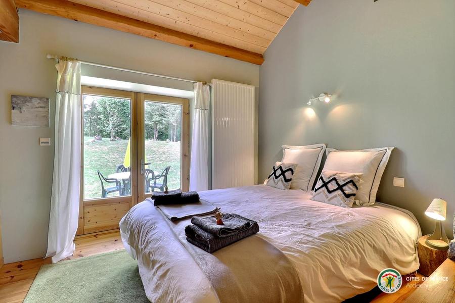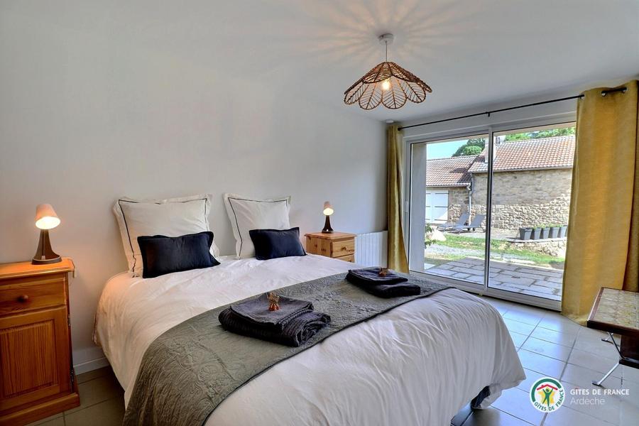 Chambre avec 1 lit en 160 cm et accès direct sur la terrasse.