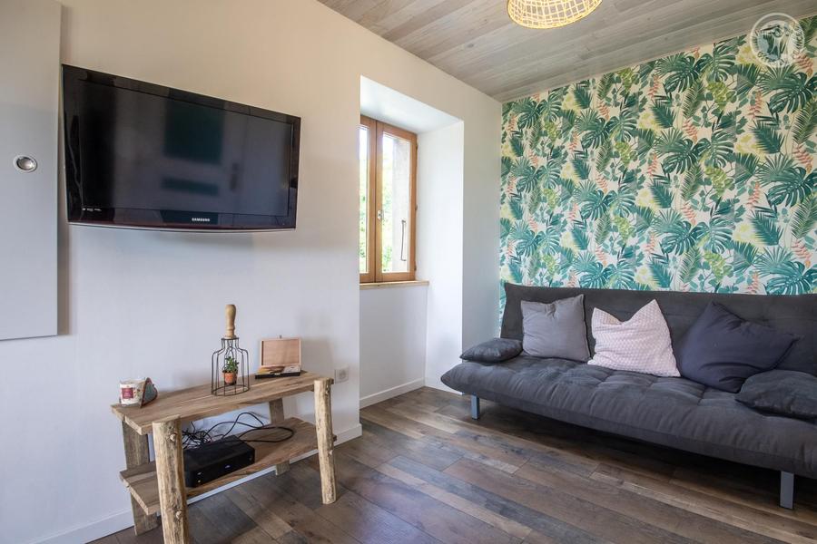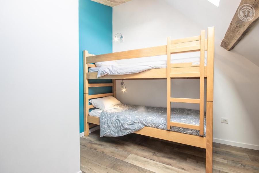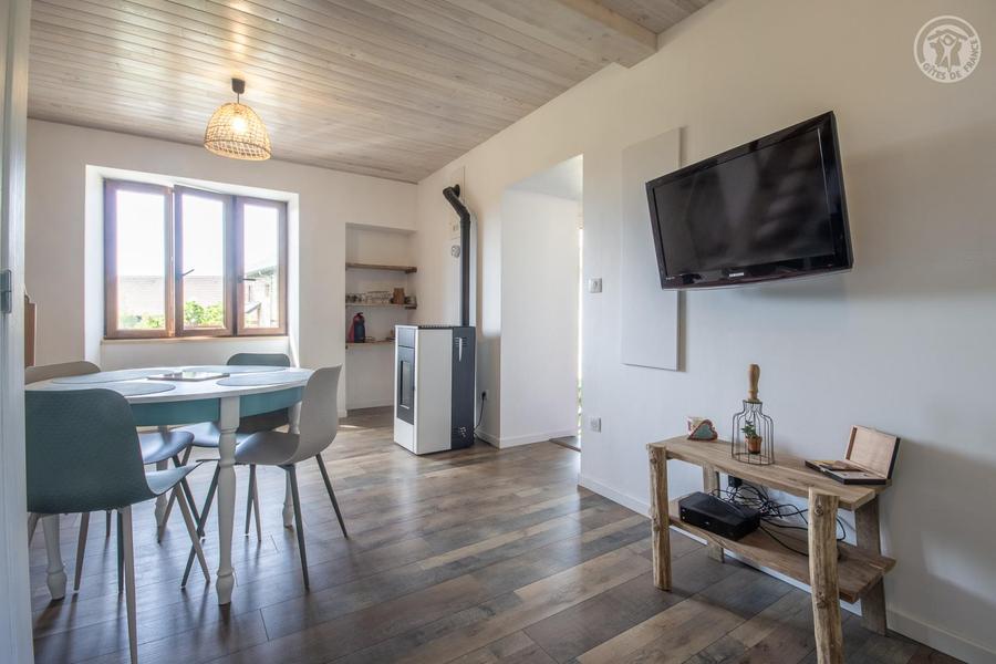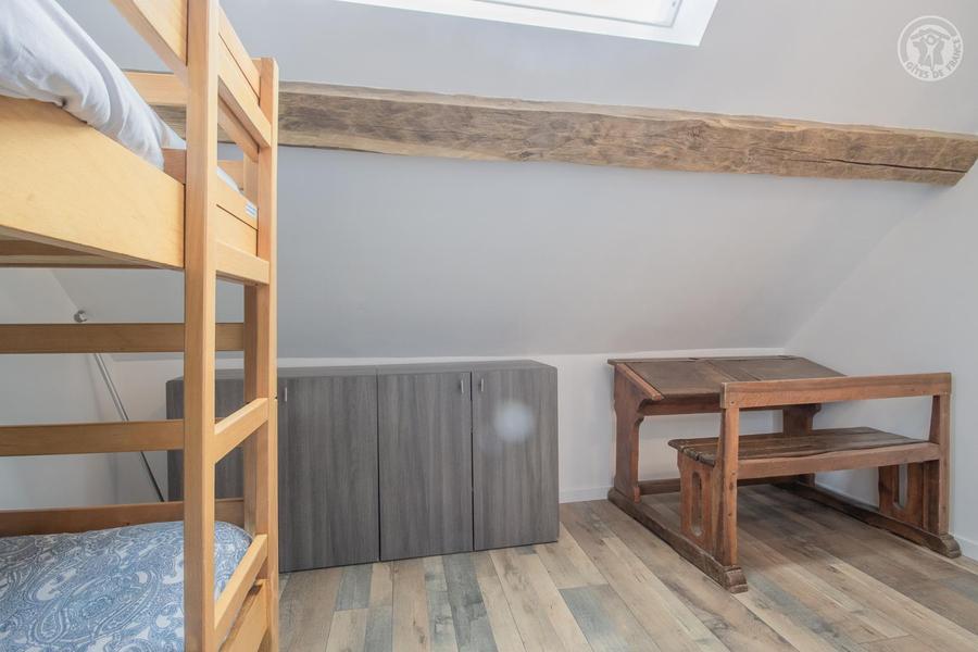 Un beau projet de famille ! La famille Labully a rénové cette ancienne forge, là où ont séjourné autrefois les grands-parents. Cette grande bâtisse en pierre devenue aujourd'hui un gîte a du cachet. Elle borde le célèbre sentier de Saint Jacques de Compostelle, haut lieu de pèlerinage. Fonctionnel, moderne et lumineux, ce gîte est un vrai nid douillet pour un séjour en couple ou en famille ! Maison comprenant deux gîtes. Au 1er étage : salon -séjour -cuisine. Salle d'eau. WC. Au premier étage : 2 chambres (1 lit 2 personnes en 140x190 cm / 2 lits 1 personne en 90x190 cm). Buanderie au rez-de-chaussée en commun avec le second gîte. Espace extérieur privatif non attenant au gîte de l'autre côté de la route. Draps et linges de toilette inclus. Barbecue à la demande.