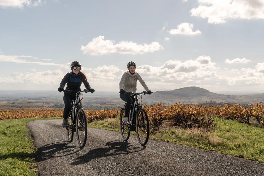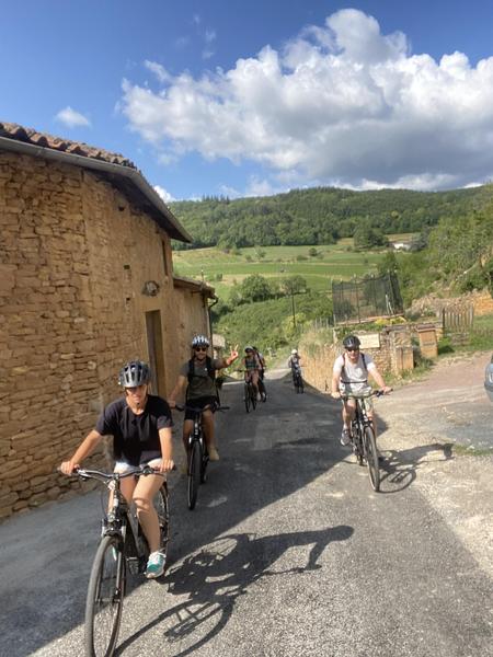 Profitez de vos vélos électriques pour arpenter les terrains du Beaujolais tout en douceur. Ce parcours vous fera découvrir le Beaujolais des "Pierres Dorées". Venez découvrir pourquoi cette région des pierres dorées est dénommée ainsi !!