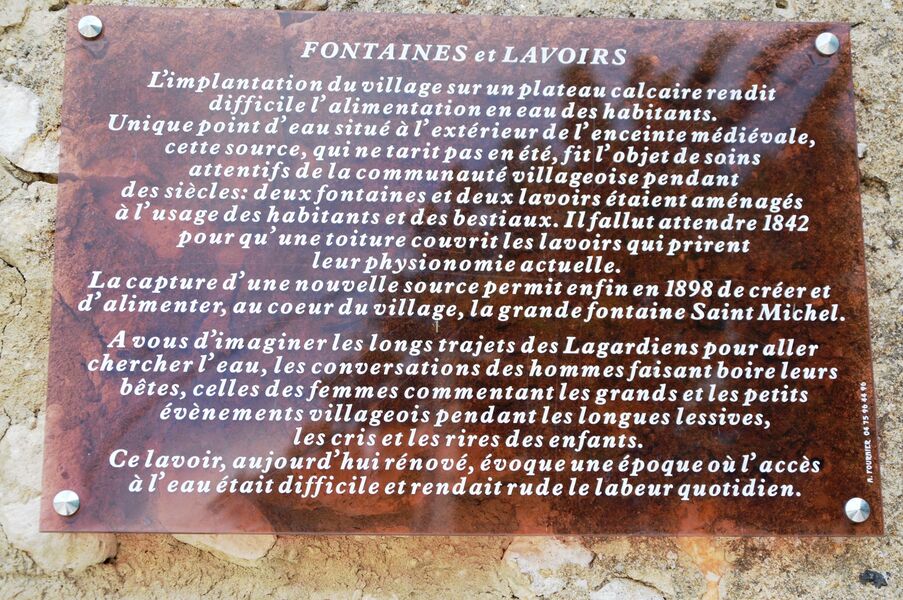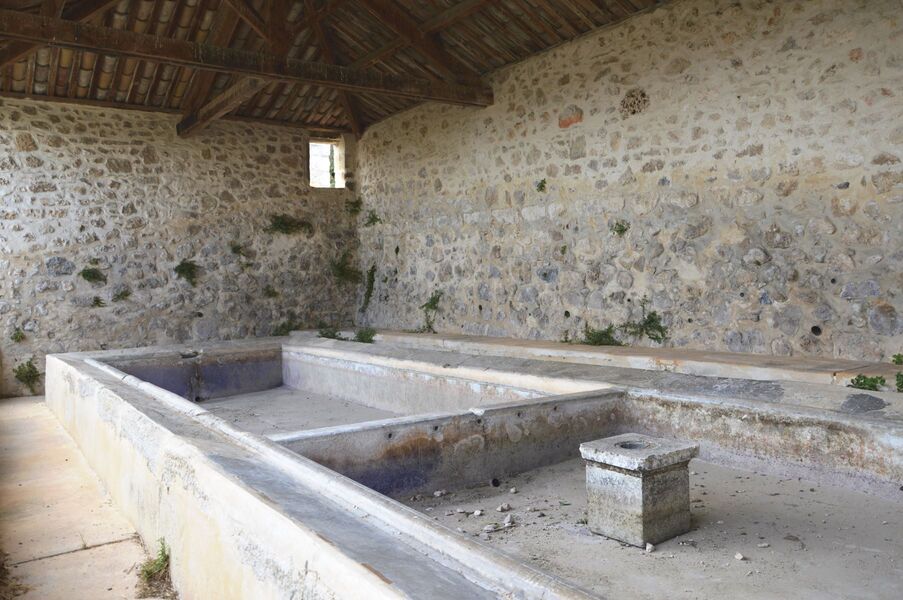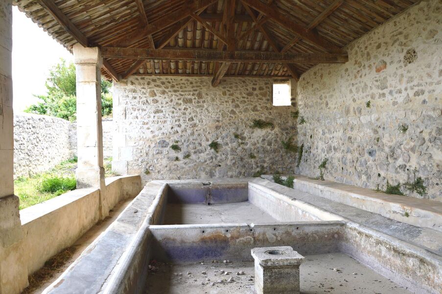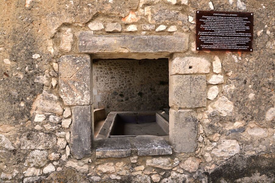Lavoir alimenté par la Grande Fontaine située à quelques pas. Ce point d'eau unique fut l'objet de soins réguliers par la communauté villageoise et l'utilisation en est réglementée. En 1841-42, les deux lavoirs sont enfin couverts par une toiture.