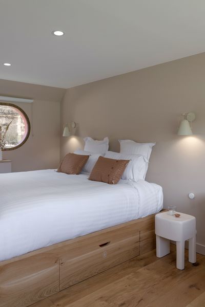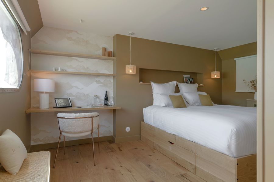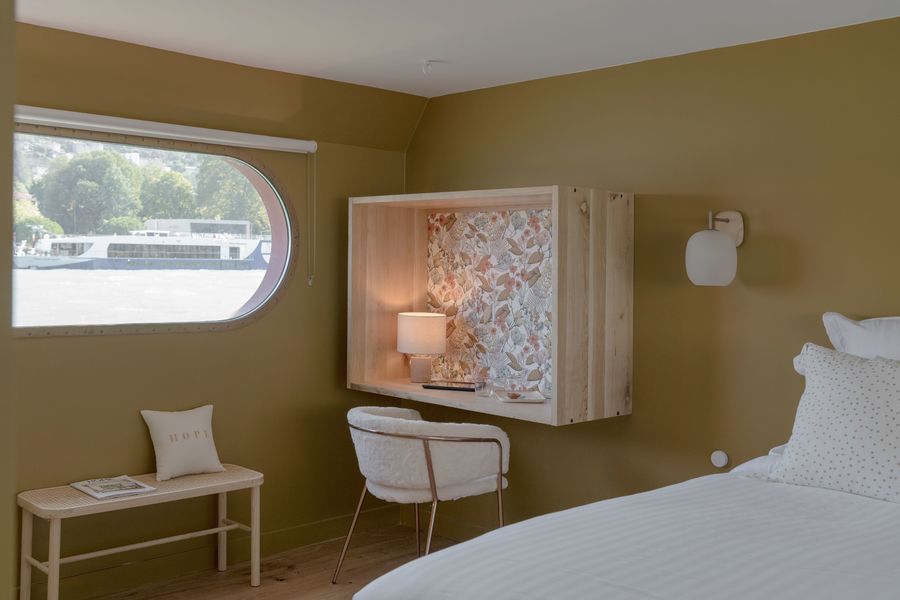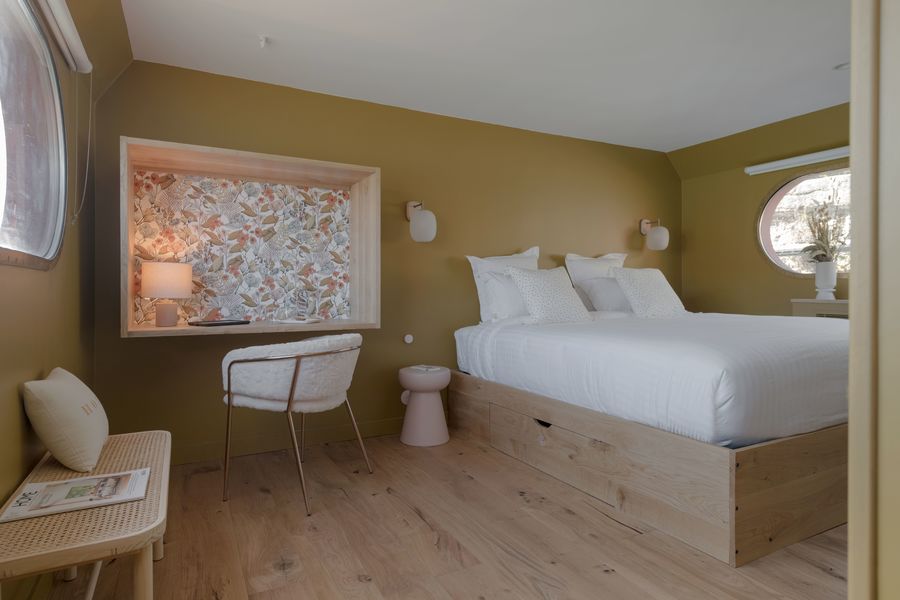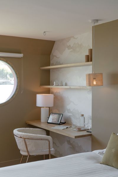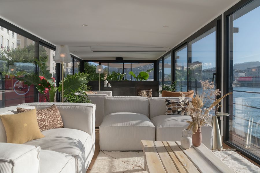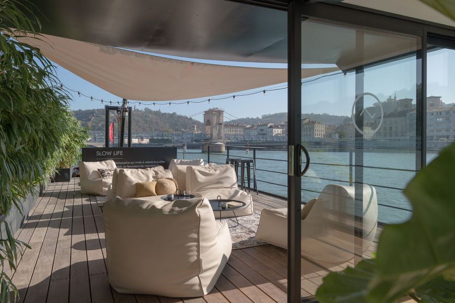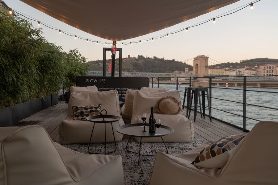 Passez un nuit ou plus dans ce lieu d'exception ! La « slow life » est un mode de vie, une philosophie qui invite à ralentir à profiter de l’instant présent, en favorisant les moments de qualité avec nous-même et avec nos proches. Le concept de La Péniche, (Bed and Bicycle) est l'idéal pour des escales fluviales d’exception le long du Rhône, sur la ViaRhôna, à destination d' une clientèle d'escale et itinérante à vélo. La péniche comprend 5 cabines traversantes de 20m2 (dont l'une peut accueillir une 3ème personne dans un lit 1 place en mezzanine ). Elles occupent l'ancienne cale et se situent légèrement au dessous du niveau du fleuve. Les larges hublots de chaque côté du lit participent à la sensation de flottement et de calme qui gagnent les corps et les esprits. Chaque cabine est équipée d'une salle de bain douche confortable. Possibilité d'installer un hamac pour profiter pleinement des bercements de l'eau. En toute discrétion, les hôtes pourront jouir sur le pont terrasse d'un bain nordique en encore d'un spa (+ sauna et table de massage sur réservation) en sous sol. Jardin d'hiver, cuisine équipée invitent à profiter de l'instant présent en compagnie des autres hôtes. Les cyclistes pourront laisser leurs vélos dans un container sécurisé (QR code et caméra de surveillance) sur le quai. C'est une péniche connectée avec QR codes d'accès aux chambres et aux espaces communs, connexion wifi haut débit + systèmes Air Play.