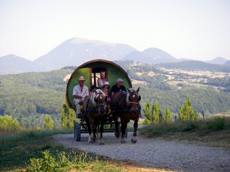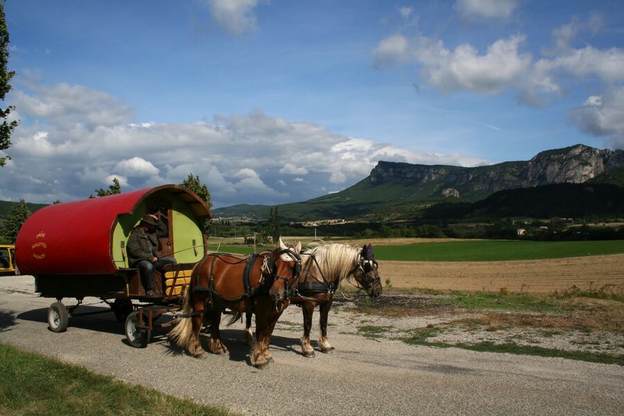 Circuit en roulotte avec chevaux et cocher professionnel! Ouvrez grand les yeux, la Drôme est superbe ! Gamme de séjours allant de 1 nuit et 1 voyage jusqu'à 7 nuits et 7 voyages tarifs pour la roulotte -de 1 à 4 personnes- variant de 199€ à 1680€