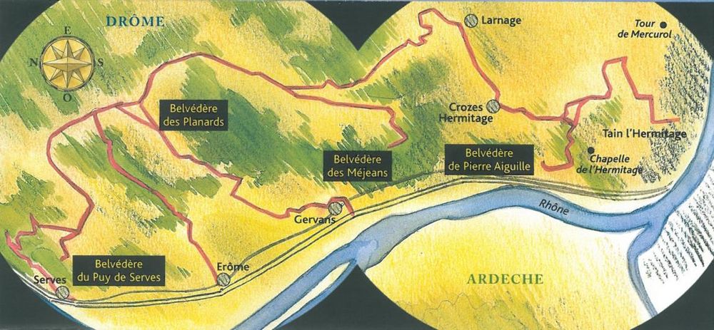 Le circuit des belvédères vous permet, avec des départs multiples de Tain l'Hermitage, Gervans, Serves sur Rhône et Erôme, de circuler à travers notre exceptionnel vignoble et d'avoir des points de vue uniques sur notre belle région.