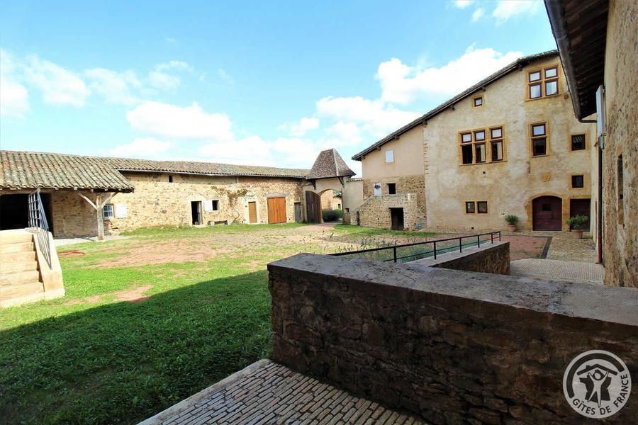 Gîte L'Annexe au Château de Pravins à Blacé (Rhône, Beaujolais, proximité de Villefranche-sur-Saône) : la cour du Château.
