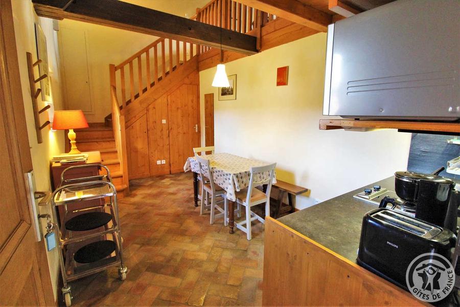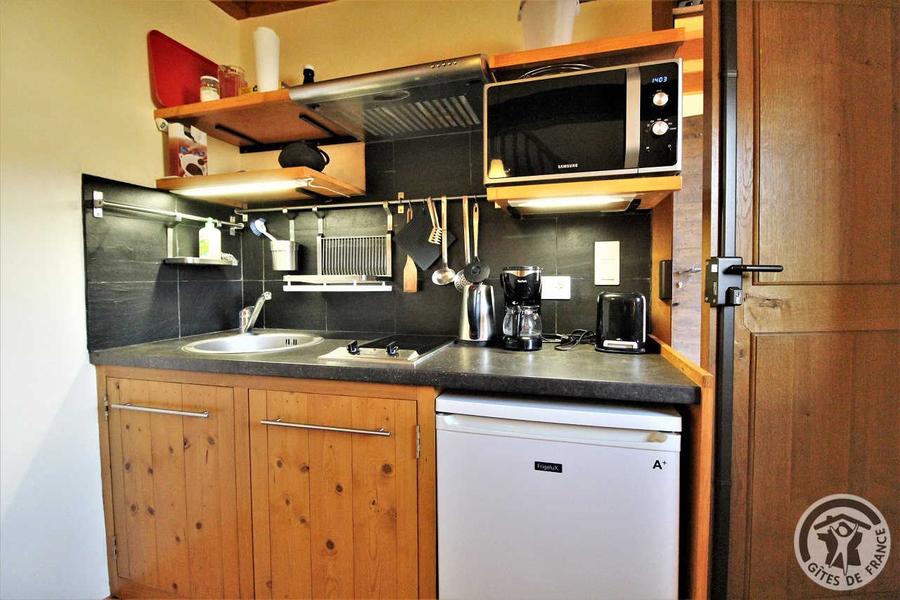 Gîte L'Annexe au Château de Pravins à Blacé (Rhône, Beaujolais, proximité de Villefranche-sur-Saône) : le coin cuisine.