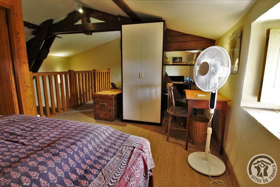 Gîte L'Annexe au Château de Pravins à Blacé (Rhône, Beaujolais, proximité de Villefranche-sur-Saône) : le coin nuit en mezzanine.
