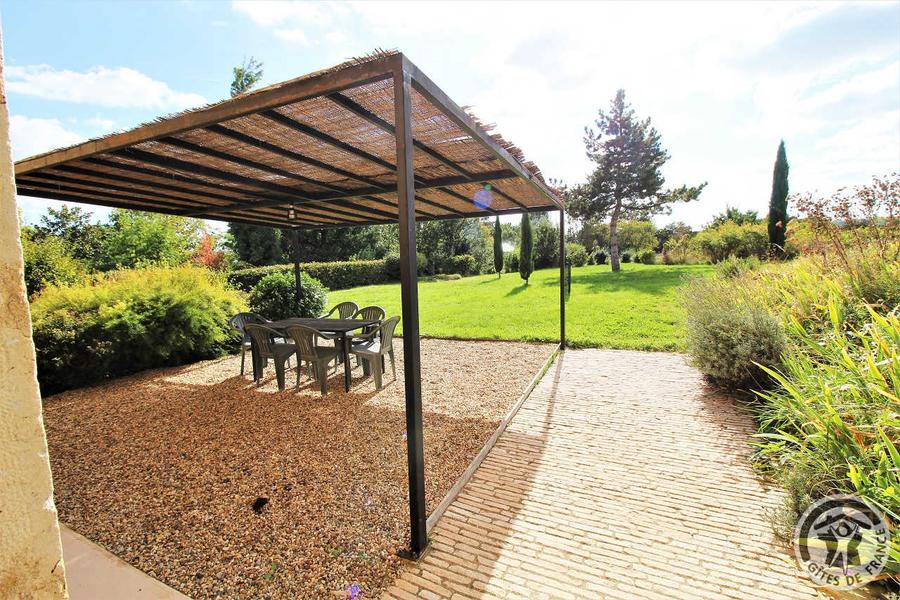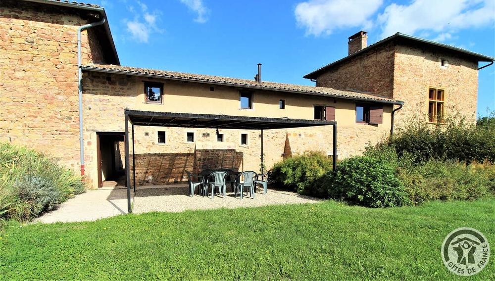Gîte L'Annexe au Château de Pravins à Blacé (Rhône, Beaujolais, proximité de Villefranche-sur-Saône) : le jardin et terrasse.