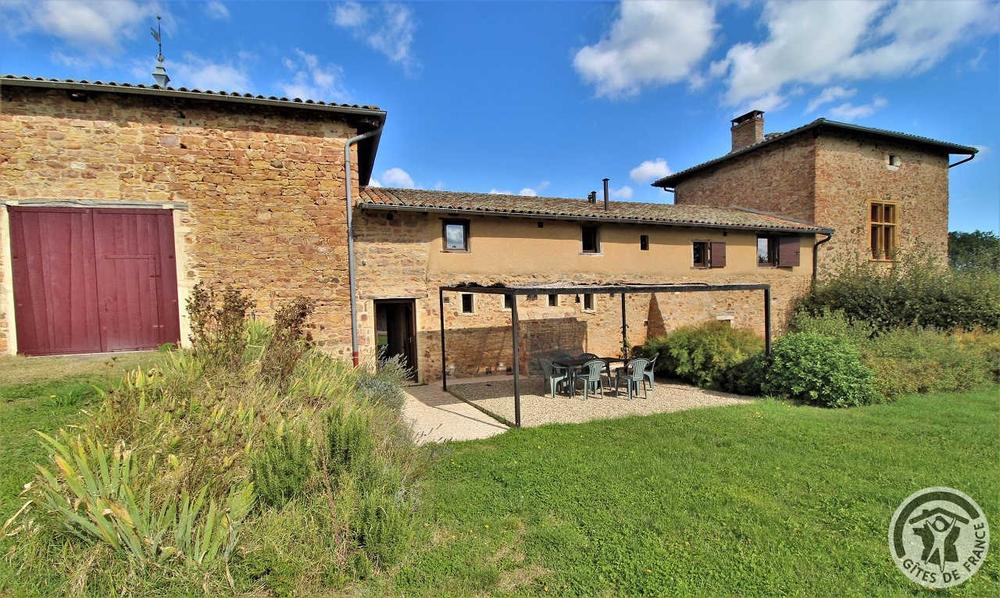 Gîte L'Annexe au Château de Pravins à Blacé (Rhône, Beaujolais, proximité de Villefranche-sur-Saône) : la façade côté sud.