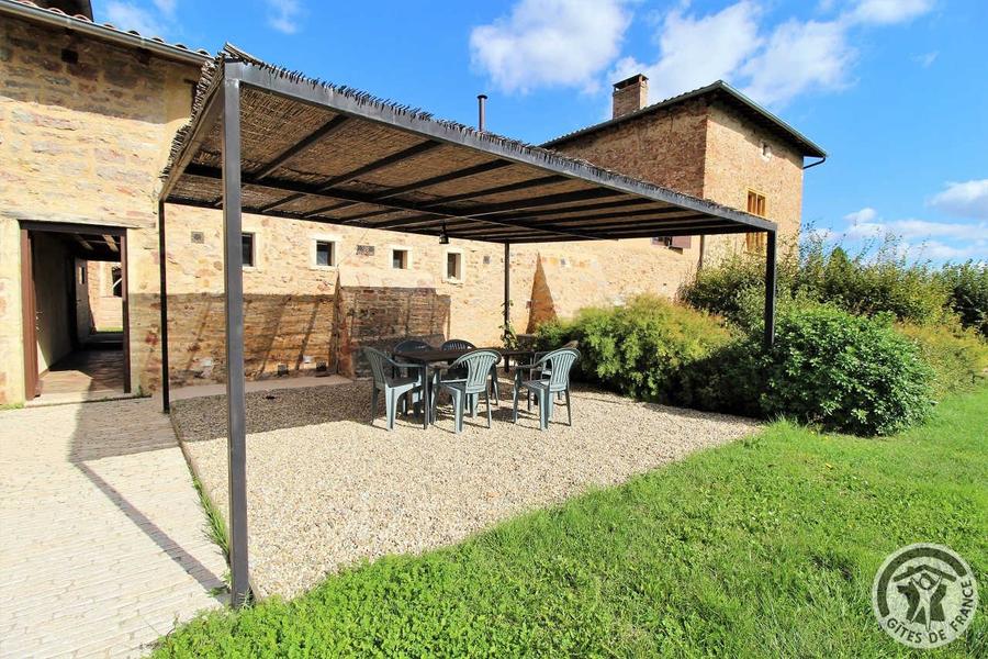 Gîte L'Annexe au Château de Pravins à Blacé (Rhône, Beaujolais, proximité de Villefranche-sur-Saône) : la terrasse.
