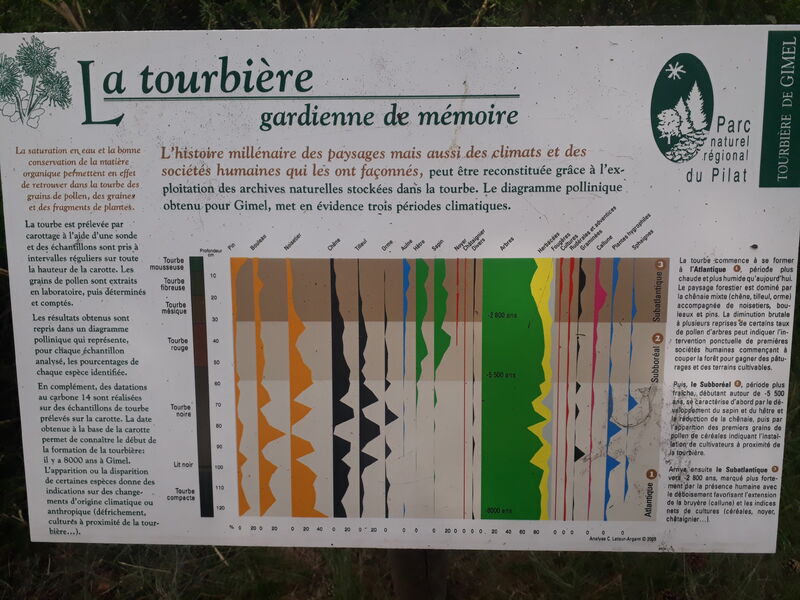 Au milieu de la tourbière, vous apercevrez d'étranges installations ; il s'agit d'appareils de mesure destinés à mieux connaître ce milieu, son fonctionnement, son histoire et son avenir. Départ : Parking de la tourbière. A Saint-Régis-du-Coin, prendre la direction du Tracol par la D28, à la Rouchouze prendre à gauche, direction "Tourbière de Gimel" Durée : 1h pour 1km aucun dénivelé