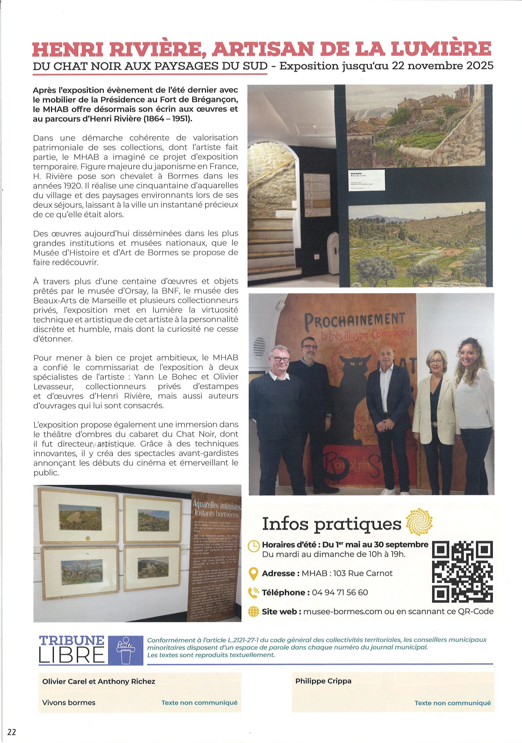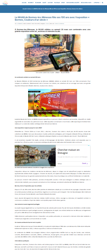 Dossier de presse du MHAB – Musée d’Histoire et d’Art de Bormes