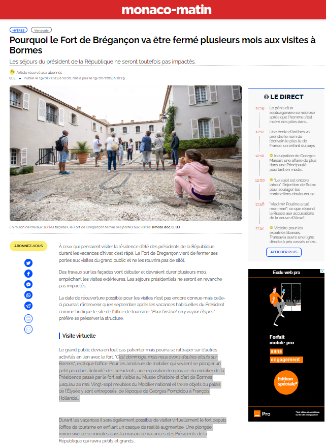 Pourquoi le fort de Brégançon va être fermé plusieurs mois aux visites à Bormes